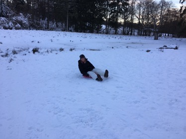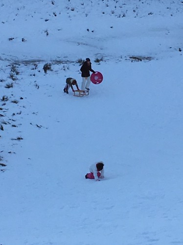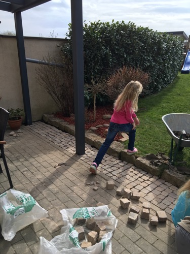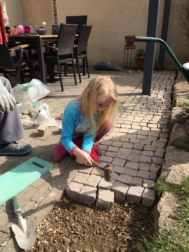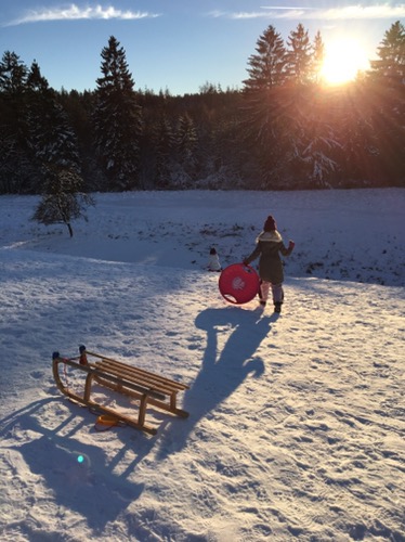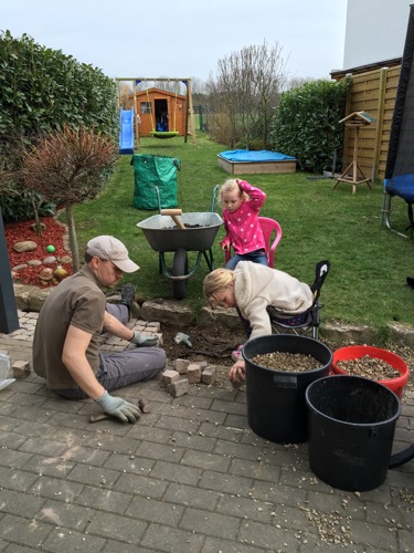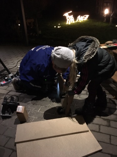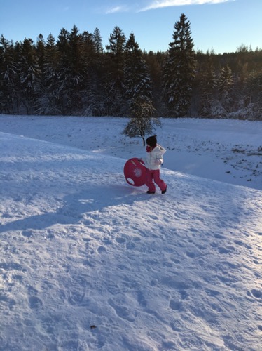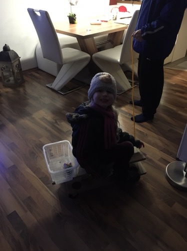 Mit Papa einen rollenden Schlitten gebaut